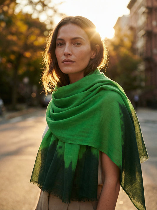 Gefärbter Keppel Green Tagelmust | Leichter Nomaden-Reiseschal