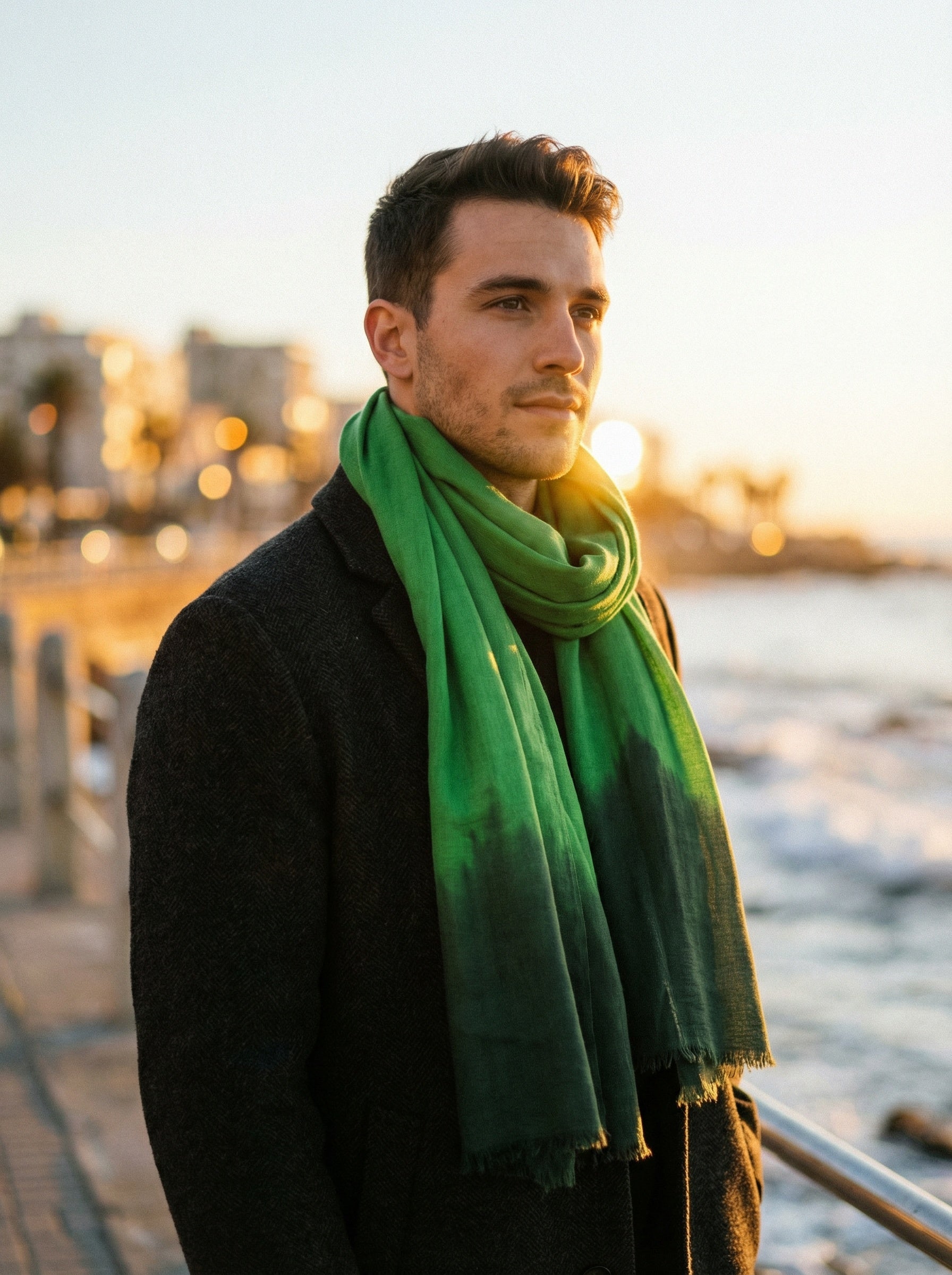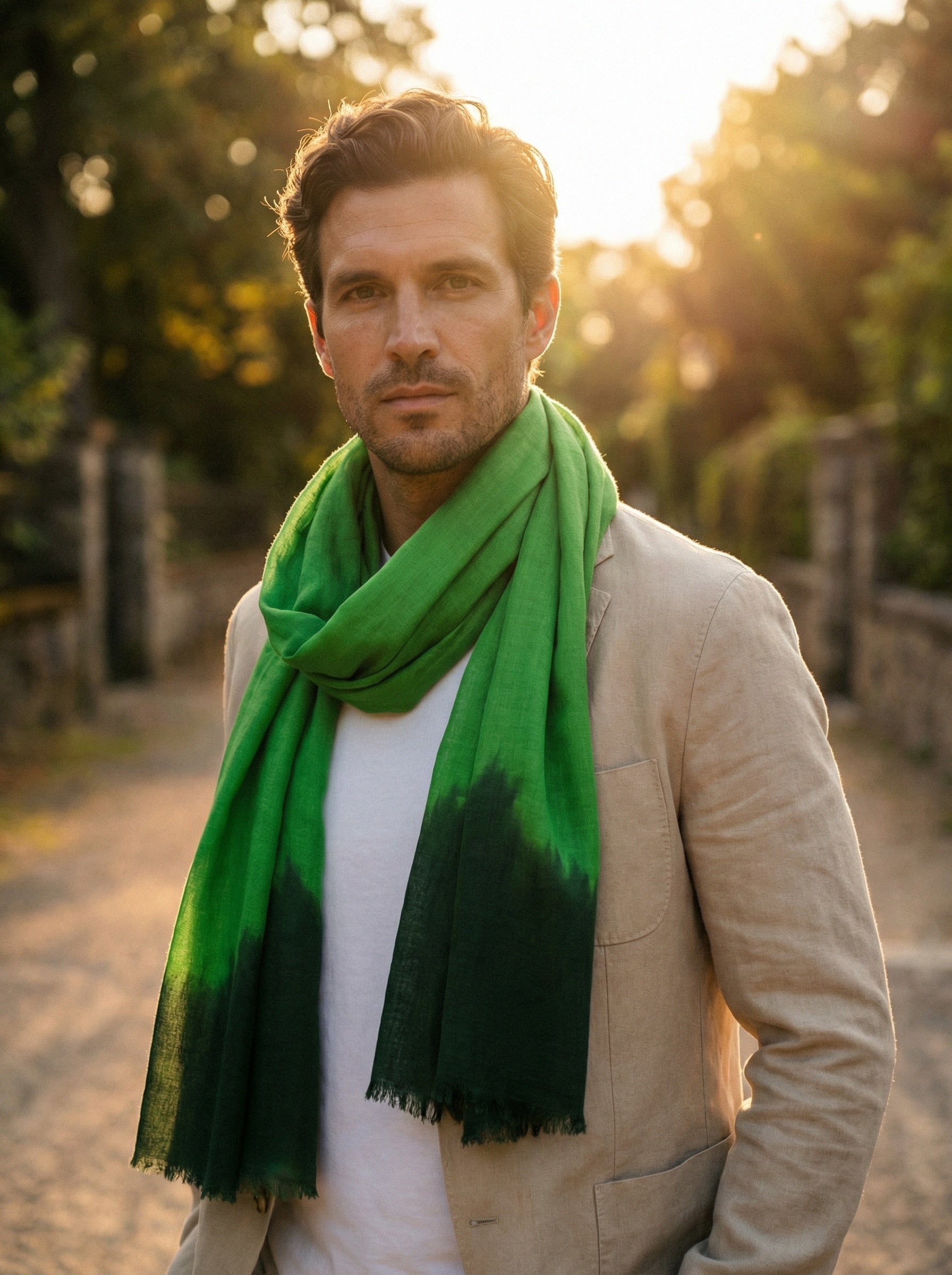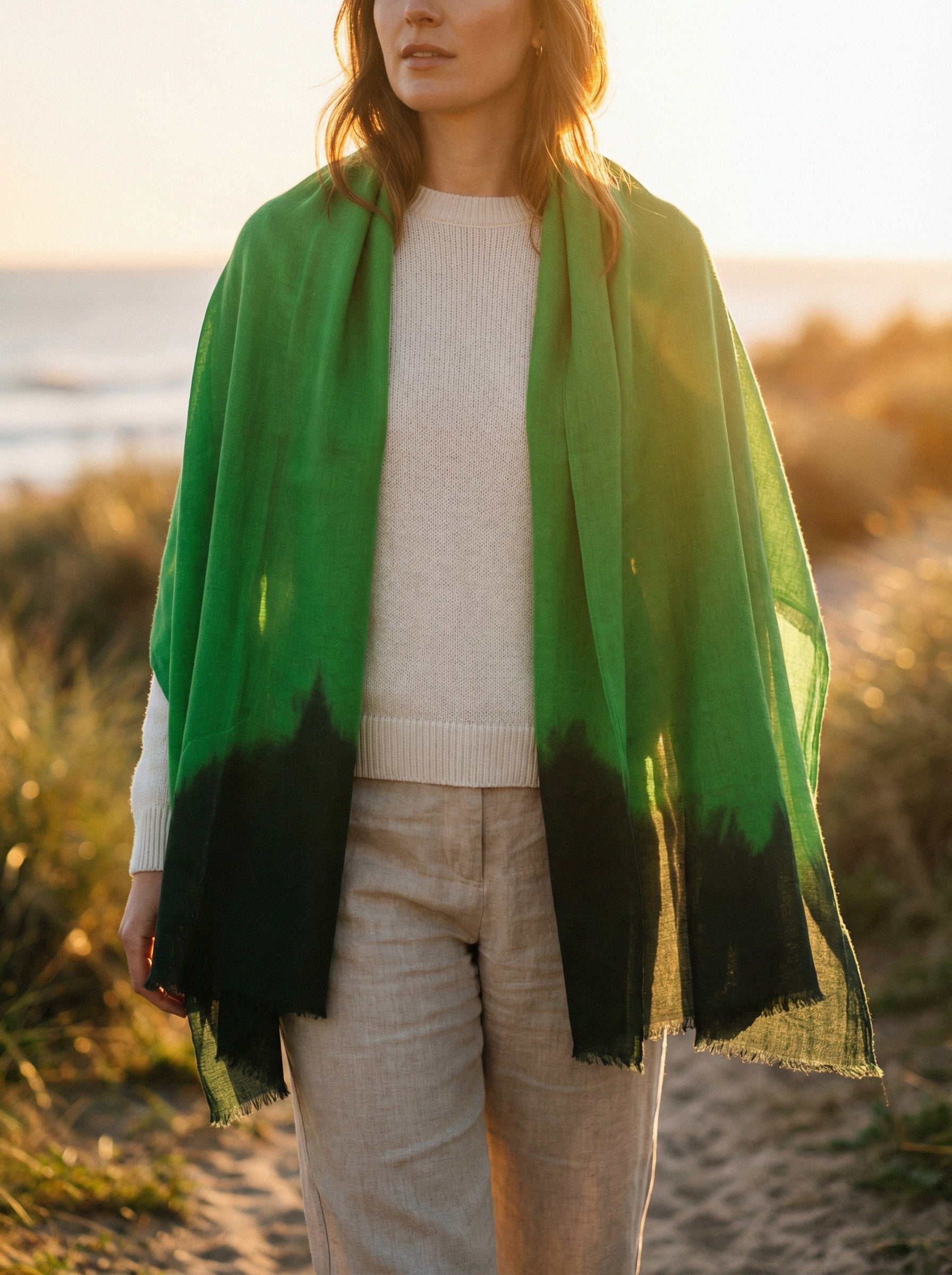 Unser Schal in Meeresgrün, getränkt in smaragdgrünen Meerestönen mit der Tiefe eines Regenwaldgrüns, fängt die Lebendigkeit der Natur ein.